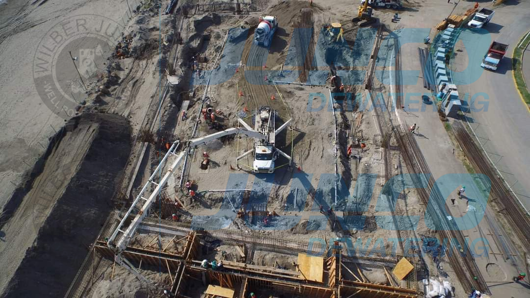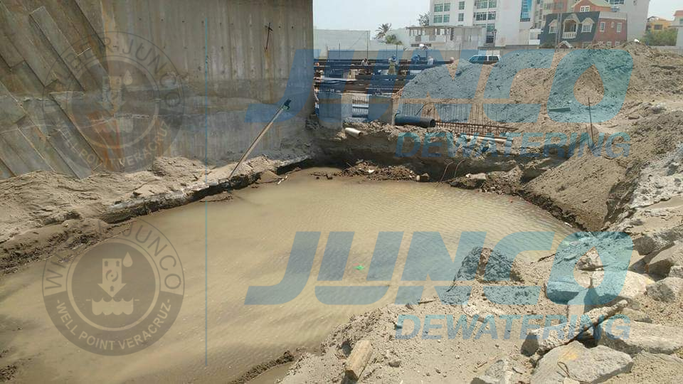 Abatimiento de N.A.F. para excavación con mejoramiento de suelo y desplante de sistema de tratamiento de aguas residuales.